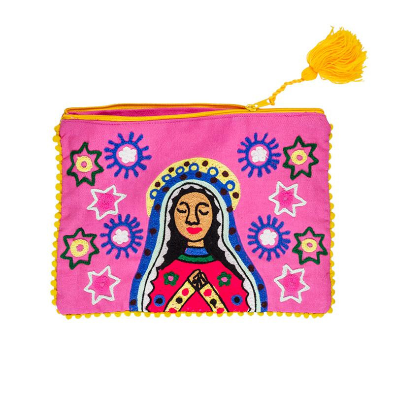Bolsa Virgen de tela de colores rosa 10x7x1 cm