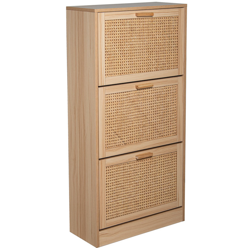 Zapatero de madera dm y ratan natural 60x24x118 cm